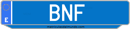 La matrícula de coche con serie BNF mostrada, ha tomado como referencia las primeras combinaciones de números del sistema para establecer estos datos.