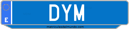 La matrícula de coche con serie DYM mostrada, ha tomado como referencia las primeras combinaciones de números del sistema para establecer estos datos.