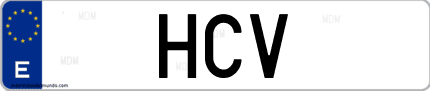 La matrícula de coche con serie HCV mostrada, ha tomado como referencia las primeras combinaciones de números del sistema para establecer estos datos.
