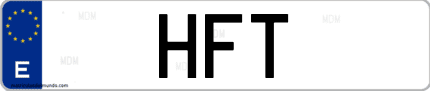La matrícula de coche con serie HFT mostrada, ha tomado como referencia las primeras combinaciones de números del sistema para establecer estos datos.