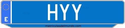 La matrícula de coche con serie HYY mostrada, ha tomado como referencia las primeras combinaciones de números del sistema para establecer estos datos.